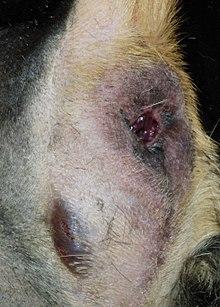 - ^ Head L, Francis D (2002). "Mineralized paraprostatic cyst as a potential contributing factor in the development of perineal hernias in a dog". J Am Vet Med Assoc. 221 (4): 533–5, 500. doi:10.2460/javma.2002.221.533. PMID 12184704.