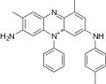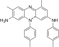 ) incorporates one molecule each of aniline, p-toluidine, and two of o-toluidine. In 1879, Perkin showed mauveine B related to safranines by oxidative/reductive loss of the p-tolyl group.[7] In fact, safranine is a 2,8-dimethyl phenazinium salt, whereas the parasafranine produced by Perkin is presumed[8] to be the 1,8- (or 2,9-) dimethyl isomer.