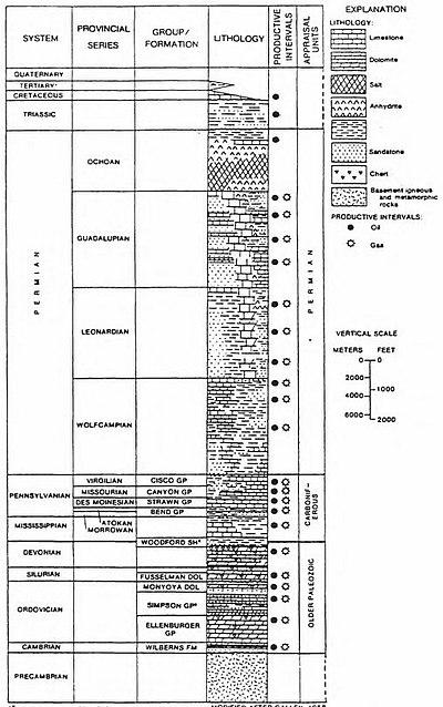 - ^ a b c Robinson, Keith (1988). "PETROLEUM GEOLOGY AND HYDROCARBON PLAYS OF THE PERMIAN BASIN PETROLEUM PROVINCE WEST TEXAS AND SOUTHEAST NEW MEXICO, USGS Open-File Report 88-450Z" (PDF). USGS. pp. 10, 32, 37, 42. Retrieved 25 July 2020.