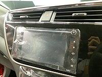 The most significant changes in the facelifted Perodua Myvi would amount to the increased equipment and kit levels across the range. Despite that, projector headlamps and Bluetooth connectivity were no longer standard. The 1.3L and 1.5L models are differentiated with unique bumpers and alloy rims.[28] The 1.3L Standard G model, the base model of the range, is fitted with a simple radio with CD-player head unit, while the more expensive 1.3L Premium X and 1.5L SE models add MP3/WMA, USB and Bluetooth functions.[28] The range-topping 1.5L Advance variant is equipped with a multimedia system and navigation, as well as a reverse camera. Both 1.3L models are fitted with standard fabric seats, while the 1.5L SE sports fabric semi-bucket seats, which is leather-wrapped in the 1.5L Advance.[28] Additionally, all models with the exception of the 1.3L Standard G feature front corner sensors. The 1.3L models are fitted with standard halogen headlamps, whereas the 1.5L variants feature projector headlamps with guide lights, a first for a B-segment Malaysian-made car.[28] Other new additions include the well-received anti-snatch hook first seen in the Perodua Axia, as well as a retractable cup holder under the driver's right side air conditioning vent.