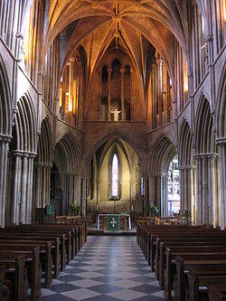 A three manual organ built by Nicholson of Malvern in 1872, was removed and replaced with a Bradford electronic organ. The Nicholson was restored twice by J. W. Walker & Sons Ltd, in 1940 and 1971.[42] A new pipe organ, costing around £850,000, has been commissioned from the Fratelli Ruffatti workshop in Italy.