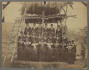 In spite of its name the Brigade was not a typical Cossack force as employed in the neighbouring Russian Empire. The Cossack regiments of the Imperial Russian Army were based on a feudal-style system under which military service was given in return for long-term grants of land. By contrast the Persian Cossack Brigade was recruited on a conventional basis, from a mix of volunteers and conscripts. Neither did it have the status of a guards unit. However, it closely resembled a true Cossack-style cavalry unit.[3] Late 19th century photographs show Russian style uniforms, in contrast to the indigenous dress of other Persian forces at the time.