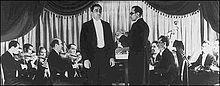 Ali-Naqi Vaziri, one of the most prominent and influential musicians of the late Qajar and early Pahlavi periods, established a private music school in 1924, where he also created a school orchestra composed of his students, formed by a combination of the Iranian instrument of tar and some western instruments. Vaziri then founded an association named Music Club (Kolub-e Musiqi), formed by a number of progressive-minded writers and scholars, where the school orchestra performed concerts that were conducted by himself.[2] The Tehran Symphony Orchestra (Orkestr-e Samfoni-ye Tehrān) was founded by Gholamhossein Minbashian in 1933.[3] It was reformed by Parviz Mahmoud in 1946, and is currently the oldest and largest symphony orchestra in Iran.[4] Later, Ruhollah Khaleqi, a student of Vaziri, established the Society for National Music (Anjoman-e Musiqi-ye Melli) in 1949.[1] He wrote his musical compositions within the parameters of classical Iranian modes, some of which involved Western triadic harmony.[1] Many of Iran's folk songs have the potential of being adapted into major or minor tonalities, and therefore, a number of Iranian folk songs were arranged for orchestral accompaniment.[1]