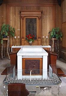 He had been given an assistant but laboured through all his work until his death from nephritis on 14 January 1887 (he suffered this since 1 January); his superiors noted his frail constitution and moved him to easier assignments though Donders moved back to Batavia when he sensed his end was near to be with his patients.[2] He was buried in Batavia but was relocated on 28 July 1900 in the Saint Peter and Paul Cathedral at Paramaribo which was consecrated in 1885 before his death. His remains were reinterred in the same cathedral in another location on 17 January 1921. Donders' birth house in Tilburg was reconstructed in 1930 on the old foundations and a well is also there.[2]