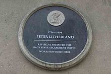 Peter Litherland (1756–1805) was a British watchmaker and inventor.[1] He was born in Warrington and later moved to Liverpool, which was then the centre of the watchmaking trade. In 1791 he patented the rack lever escapement for watches, which was more accurate than the commonly used verge escapement. One of his watches is on display in the World Museum Liverpool.