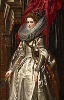 He returned to Italy in 1604, where he remained for the next four years, first in Mantua and then in Genoa and Rome. In Genoa, Rubens painted numerous portraits, such as the Marchesa Brigida Spinola-Doria (National Gallery of Art, Washington, D.C.), and the portrait of Maria di Antonio Serra Pallavicini, in a style that influenced later paintings by Anthony van Dyck, Joshua Reynolds and Thomas Gainsborough.[14]