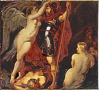 His stay in Antwerp was brief, and he soon travelled on to London where he remained until April 1630. An important work from this period is the Allegory of Peace and War (1629; National Gallery, London).[28] It illustrates the artist's lively concern for peace, and was given to Charles I as a gift.