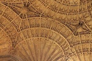 The Norman tower was rebuilt in the Decorated Gothic style in about 1350–1380 (its main beams and roof bosses survive) with two tiers of Romanesque windows combined into a single set of Gothic windows, with the turreted cap and pinnacles removed and replaced by battlements. Between 1496 and 1508, the Presbytery roof was replaced and the "New Building", a rectangular building built around the end of the Norman eastern apse, with Perpendicular fan vaulting (probably designed by John Wastell, the architect of King's College Chapel, Cambridge and the Bell Harry Tower at Canterbury Cathedral), was added.