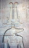 A wall relief from Kom Ombo showing Sobek with solar attributes