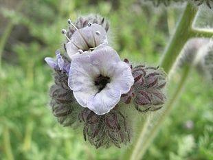 The flower buds are held in tight, hairy coils which uncoil as the flowers open one by one. The flowering stems' resemblance of caterpillars lends this plant its common name. Flowers appear between March and May and are dirty-white to pale lavender in color.
