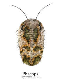 Phacops is a genus of trilobites in the order Phacopida, family Phacopidae, that lived in Europe, northwestern Africa, North and South America and China from the Late Ordovician until the very end of the Devonian,[2] with a broader time range described from the Late Ordovician.[3] It was a rounded animal, with a globose head and large eyes, and probably fed on detritus.[4] Phacops is often found rolled up ("volvation"), a biological defense mechanism that is widespread among smaller trilobites but further perfected in this genus.[4]