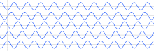where , , and are constant parameters called the amplitude, frequency, and phase of the sinusoid. These signals are periodic with period , and they are identical except for a displacement of along the axis. The term phase can refer to several different things: