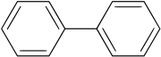 Biphenyl, consisting of two phenyl groups. The two rings tend not to be coplanar.