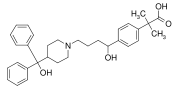 Fexofenadine (Allegra, Telfast), another blockbuster drug, which features a diphenylmethyl group as well as a p-phenylene (C6H4) group. It is an antihistamine used to treat allergies.