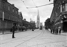St. Peter's Catholic Church and schools date from 1862. The construction of the church was controversial, resulting in a long and costly lawsuit. This dispute between the architect and builder ended in the courts and required the intervention of the Roman Catholic Archbishop of Dublin.[11] All Saints Church of Ireland Parish Church, Phibsborough Road, was completed in 1904. The renowned Tractarian, Dr Maturin, was rector for many years, establishing a High Church tradition of worship. The interior was restored in recent years, having suffered fire damage in 1968.