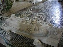 … King Philip daily grew feebler. For after he had abducted the Countess of Anjou, he could achieve nothing worthy of the royal dignity; consumed by desire for the lady he had seized, he gave himself up entirely to the satisfaction of his passion. So he lost interest in the affairs of state and, relaxing too much, took no care for his body, well-made and handsome though it was. The only thing that maintained the strength of the state was the fear and love felt for his son and successor. When he was almost sixty, he ceased to be king, breathing his last breath at the castle of Melun-sur-Seine, in the presence of the [future king] Louis... They carried the body in a great procession to the noble monastery of St-Benoît-sur-Loire, where King Philip wished to be buried; there are those who say they heard from his own mouth that he deliberately chose not to be buried among his royal ancestors in the church of St. Denis because he had not treated that church as well as they had, and because among those of so many noble kings, his own tomb would not have counted for much.