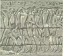 Since 1846, scholars have connected the biblical Philistines with the Egyptian "Peleset" inscriptions.[33][34][35][36][37] All five of these appear from c.1150 BCE to c.900 BCE just as archaeological references to Kinaḫḫu, or Ka-na-na (Canaan), come to an end;[38] and since 1873 comparisons were drawn between them and to the Aegean "Pelasgians."[39][40] Archaeological research to date has been unable to corroborate a mass settlement of Philistines during the Ramesses III era.[41][42][43]
