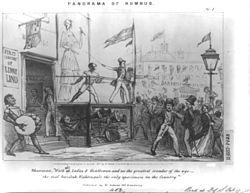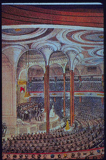 The tour began with a concert at Castle Garden on September 11, 1850, and it was a major success, recouping Barnum four times his investment. Washington Irving proclaimed, "She is enough to counterbalance, of herself, all the evil that the world is threatened with by the great convention of women. So God save Jenny Lind!"[18] Tickets for some of her concerts were in such demand that Barnum sold them by auction, and public enthusiasm was so strong that the press coined the term "Lind mania".[19] The blatant commercialism of Barnum's ticket auctions distressed Lind,[19] and she persuaded him to make a substantial number of tickets available at reduced prices.[20]