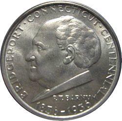 The city of Bridgeport issued a commemorative coin in 1936 for their centennial celebration, with his portrait for the obverse.[44] Cartoonist Walt Kelly grew up in Bridgeport and named a character in Barnum's honor in his Pogo comic strip. An annual six-week Barnum Festival was held for many years in Bridgeport as a tribute to Barnum.[45] The Bethel Historical Society commissioned a life-sized sculpture to honor the 200th anniversary of his birth, created by local resident David Gesualdi and placed outside the public library.[46] The statue was dedicated on September 26, 2010.[47]