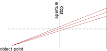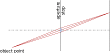 From the front of the camera, the small hole (the aperture), would be seen. The virtual image of the aperture as seen from the world is known as the lens's entrance pupil; ideally, all rays of light leaving a point on the object that enter the entrance pupil will be focused to the same point on the image sensor/film (provided the object point is in the field of view). If one were inside the camera, one would see the lens acting as a projector. The virtual image of the aperture from inside the camera is the lens's exit pupil. In this simple case, the aperture, entrance pupil, and exit pupil are all in the same place because the only optical element is in the plane of the aperture, but in general these three will be in different places. Practical photographic lenses include more lens elements. The additional elements allow lens designers to reduce various aberrations, but the principle of operation remains the same: pencils of rays are collected at the entrance pupil and focused down from the exit pupil onto the image plane.