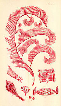 The work, published in five separate volumes between 1858 and 1863, is the result of Harvey’s extensive collecting along the Australian shores during a three year sabbatical. By the time Harvey set foot in Western Australia, he had already established himself as a leading phycologist having published several large works on algae from the British Isles, northern America as well as the Southern Ocean (Nereis Australica). The fact that Harvey travelled the globe on several occasions and collected the seaweeds which he described himself in his later publications, set him apart from most of his contemperoraries who relied for the most part on specimens collected by others. In addition Harvey’s zest for work, made he pressed sometimes over 700 specimens in a single day, which were distributed to his colleagues a set of Australian algae. Upon his return to Trinity College in Dublin, Harvey embarked on a mission: the illustration and description of over 300 species of Australian algae, for which he deserved the title "father of Australian Phycology".[1]