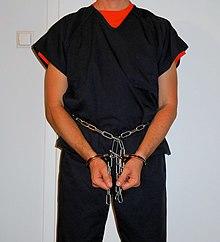 The freedom of movement in terms of locomotion is usually limited, by locking a person into an enclosed space, such as a prison cell and by chaining or binding someone to a heavy or immobile object. This effect can also be achieved by seizing and withholding specific items of clothing, that are normally used for protection against common adversities of the environment. Examples can be protective clothing against temperature, forcing the individual to remain in a sheltered spot. A practice employed in countries including Zimbabwe[1] is to take away a prisoner's shoes, forcing them to remain barefoot. The freedom of movement is practically restricted in many everyday situations without the protection offered by conventional footwear. Various ground textures in urban as well as natural areas can cause substantial physical distress for a shoeless person and hinder their locomotion. Ground textures consisting of crushed stone or similar construction aggregate can be practically impossible for a person to walk or run over without wearing shoes. Aside from extreme circumstances, an unshod person is steadily compromised by the usual imponderabilities of most surroundings and localities. Controlling the free movement of detainees by keeping them barefoot is therefore common practice in many countries. A main motive can be seen in the fact, that the principal effects of frustrating prison escape and curbing acts of resistance are obtained without cost and with only minimal effort. Further it is an effective complementation of binding restraints.