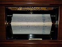 A player piano (also known as a pianola) is a self-playing piano, containing a pneumatic or electro-mechanical mechanism that operates the piano action via programmed music recorded on perforated paper, or in rare instances, metallic rolls, with more modern implementations using MIDI. The rise of the player piano grew with the rise of the mass-produced piano for the home in the late 19th and early 20th century.[1] Sales peaked in 1924, then declined as the improvement in phonograph recordings due to electrical recording methods developed in the mid-1920s. The advent of electrical amplification in home music reproduction via radio in the same period helped cause their eventual decline in popularity, and the stock market crash of 1929 virtually wiped out production.