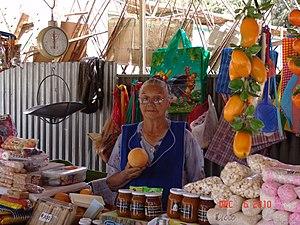 Pica had once an extensive irrigation system of puquios, locally known as socavones (lit. shafts).[7] In 1918 geologist Juan Brüggen mentioned the existence of 23 socavones in the Pica oasis, yet these have since then been abandoned due to economic and social changes.[7] The socavones transported water from the Pica Aquifer to the oasis.[7] As in many oases one of the biggest challenges for farmers in Pica is the scarcity of water.[8] Most of the farmers in Pica own less than five hectares, and while this size hampers commercialization of products farmers have responded by organising themselves in cooperatives.[8] Six producers, compromising one fifth of the agricultural output of the oasis, are organised in Oasis Pica Coop. This organisation was as of 2019 working to certify products as organic and enforce the appellation control for Limón de Pica.[8] Limón de Pica have had an appellation since 2010.[8]