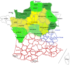 The gap has continued to widen between French and the varieties of langues d'oïl, which today we would call "French dialects"; Franc-comtois, Walloon, Picard, Norman, Gallo, Poitevin, Saintongeais, Bourguignon-morvandiau, Lorrain must be accepted among the regional languages of France; by placing them on the list [of French regional languages], they will be known from then on as langues d'oïl.[7]