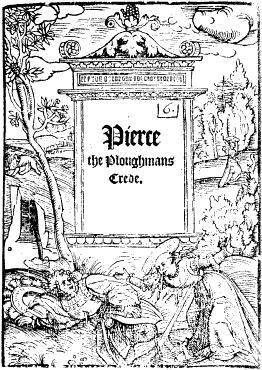 Two features make the Crede particularly worthy of note. Firstly, it is the earliest text to imitate William Langland's Piers Plowman, to which it refers explicitly. The selfless Plowman is of course directly drawn from the earlier work. Perhaps written within eight years of the C-text of Piers Plowman, the Crede thus testifies to the appeal of Langland's more subversive, anticlerical sentiments among some of his early readers. Of course, the Crede-poet only uses Piers Plowman as a launch-pad for his own views. The Crede is markedly more confident than Langland in its opposition to the clergy. The fact that it abandons Langland's dream-vision framework is suggestive of this as if the lay perfection that the Plowman represents has become more achievable in reality. The Crede conflates Piers (here, "Peres") with the author/dreamer of Piers Plowman, thus collapsing that poem's many voices into a single, collective voice of the ideal community. This misprision was a common aspect of Piers Plowman's dissemination. The character of Piers thus escapes from the confines of William Langland's vision and takes on a life, an authority, and an authorial career of his own. As in The Plowman's Tale and The Prayer and Complaint of the Plowman, true religion is the virtue of the poor. The Piers of the Crede is simply a plowman without the Christological aspect of Piers in Langland's poem.