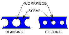 There are various types of blanking and piercing: lancing, perforating, notching, nibbling, shaving, cutoff, and dinking.