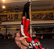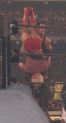 The piledriver was banned in the World Wrestling Federation (WWF, now known as the WWE) in 2000, unless the wrestler has special permission to use the move.[5] In a discussion in 2007, Stephanie McMahon said that only two wrestlers were allowed to use the move, "two of the stronger guys", Undertaker and Kane.[7] In fact, The Undertaker's tombstone piledriver continues to be his finishing move.[8] The piledriver is also banned in many other promotions and certain cities. It is also considered an automatic disqualification in professional wrestling matches held in Tennessee, as the move is banned in that state.[9] In some promotions in the United Kingdom, the move can result in not only a disqualification, but also a fine.[10] In Mexico, the piledriver (called a martinete) is an automatic disqualification.