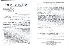 Between 1955 and 1964, Kehati published a weekly pamphlet which was hand-delivered to 5,000 subscribers. In each pamphlet, he explicated 14 Mishnayot (two per day), two laws from the Shulchan Aruch, two laws from the Rambam, and a selection from Tanakh. The first pamphlets contained commentaries that Kehati compiled from local yeshiva students. Frustrated at the inconsistencies in the commentary quality and approach, Kehati hired Rabbi Zvi A. Yehuda, who taught Mishnah on an Israel Broadcasting Service (Kol Israel) radio program, to help develop a consistent approach to his commentary.[9] Between 1956 and 1959, approximately 150 of pamphlets included attribution to his co-author. The first book-edition of the Kehati Mishnah includes this attribution (see image). Many editions have since been published after Kehati's death in 1976. Recent editions also include the traditional Bartenura commentary, improving its appeal to the Haredi community. Even though Kehati was a Religious Zionist, his works can be found in many Haredi homes and synagogues.