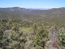 The Pine Nut Mountains take their name from the single-leaf pinyon pines that dominate the slopes between 5000 and 7000 ft.[2] This is mixed with juniper to form the standard pinyon–juniper woodland plant community. Lower slopes are dominated by sage–juniper.