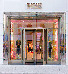Pink (stylized PINK) is a lingerie and apparel line by Victoria's Secret, a subsidiary of L Brands, targeting younger women than their main line. The target demographic consists of youth from ages 15 to 22.[1] PINK had a regular segment featuring their products in the Victoria's Secret Fashion Show, held through 2018. Sales at the company were initially swift, reaching $1 billion in 2010.[2] Reports of decline due to shifting consumer preferences appeared in 2018.[3]