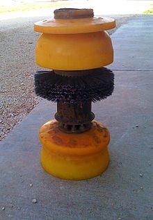 One of the most common and versatile is the foam pig which is cut or poured out of open cell polyurethane foam into the shape of a bullet and is driven through pipelines for many reasons such as to prove the inner diameter of, clean, de-water, or dry out the line. There are several types of pigs for cleaning in various densities from 2 lb to 10 lb foam and in special applications up to 20 lb. Some have tungsten studs or abrasive wire mesh on the outside to cut rust, scale, or paraffin wax deposits off the inside of the pipe. Other types are fully or criss-cross coated in urethane, or there are bare polyurethane foam pigs with a urethane coating just on the rear to seal and assist in driving the pig. There are also fully molded urethane pigs used for liquid removal or batching several different products in one line.