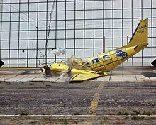 Piper discussed a merger with Swearingen but the deal was not completed.[22] The Lock Haven facility was nearly destroyed in 1972 when torrential rains from Hurricane Agnes caused the Susquehanna River to flood in June. The manufacturing plant was flooded to a depth of 16 feet (4.9 m), effectively destroying about 100 aircraft and causing an estimated $23 million in damage.[23][24] Much of the tooling necessary for production of several designs, including the Aztec, Navajo, and Comanche, was also destroyed, and the Piper PA-31T Cheyenne program received a setback when the prototype was damaged just after the Federal Aviation Administration awarded it Type Certification.[25] Initial deliveries of the new PA-31-350 Chieftain were also delayed by several months.[26] After the flood, Piper gave 32 written-off PA-28s, PA-31s and PA-23 Aztecs to NASA, which used them for crash tests at the Langley Research Center, using a rig originally built to simulate spacecraft landings on the moon for the Apollo program.[27]