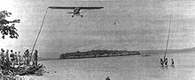 All L-4 models, as well as similar, tandem-cockpit accommodation aircraft from Aeronca and Taylorcraft, were collectively nicknamed "Grasshoppers", though the L-4 was almost universally referred to by its civilian designation of Cub. The L-4 was used extensively in World War II for reconnaissance, transporting supplies, artillery spotting duties and medical evacuation of wounded soldiers.[11] During the Allied invasion of France in June 1944, the L-4's slow cruising speed and low-level maneuverability made it an ideal observation platform for spotting hidden German armor waiting in ambush in the hedgerowed bocage country south of the invasion beaches. For these operations, the pilot generally carried both an observer/radio operator and a 25-pound communications radio, a load that often exceeded the plane's specified weight capacity.[18] After the Allied breakout in France, L-4s were also sometimes equipped with improvised racks, usually in pairs or quartets, of infantry bazookas for ground attack (actually a form of top attack) against German armored units. The most famous of these L-4 ground attack planes was Rosie the Rocketer, piloted by Maj. Charles "Bazooka Charlie" Carpenter, whose six bazooka rocket launchers were credited with eliminating six enemy tanks and several armored cars during its wartime service,[22][23] especially during the Battle of Arracourt. L-4s could also be operated from ships, using the Brodie landing system.