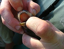 Most piranha attacks on humans only result in minor injuries, typically to the feet or hands, but they are occasionally more serious and very rarely can be fatal.[26] Near the city of Palmas in Brazil, 190 piranha attacks, all involving single bites to the feet, were reported in the first half of 2007 in an artificial lake, which appeared after the damming of the Tocantins River.[30][31] In the state of São Paulo, a series of attacks in 2009 in the Tietê River resulted in 15 people with minor injuries.[28] In 2011, another series of attacks at José de Freitas in the Brazilian state of Piauí resulted in 100 people being treated for bites to their toes or heels.[32] On 25 December 2013, more than 70 bathers were attacked at Rosario in Argentina, causing injuries to their hands or feet.[27] In 2011, a drunk 18-year-old man was attacked and killed in Rosario del Yata, Bolivia.[33] In 2012, a five-year-old Brazilian girl was attacked and killed by a shoal of P. nattereri.[34] In February 2015, a six-year-old girl died after being attacked by piranhas when her grandmother's boat capsized during a vacation in Brazil.[35]