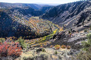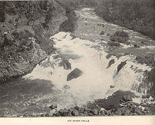 The Pit River drains a sparsely populated volcanic highlands area in Modoc County's Warner Mountains, passing through the south end of the Cascade Range in a deep canyon northeast of Redding. The river is so named because of the pits, along with other bands of what is now the Pit River Tribe, the Achumawi dug to trap game that came to water at the river.[9]