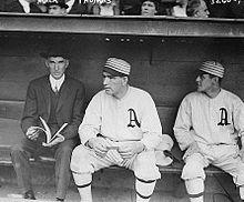 Baseball is unique in that the manager and coaches typically all wear numbered uniforms similar to those of the players. Notable exceptions to this were Baseball Hall of Fame manager Connie Mack, who always wore a black suit during his 50 years at the helm of the Philadelphia Athletics, and Burt Shotton, manager of the Brooklyn Dodgers in the late 1940s, who wore a Dodger 200 cap and a team jacket over street clothes in the dugout. After the widespread adoption of numbered uniforms in the early 1930s, Joe McCarthy, another Hall of Fame manager, wore a full uniform but no number on his back for the remainder of his career (with the New York Yankees, then the Boston Red Sox). Coincidentally, all three men retired during or after the same season—1950.