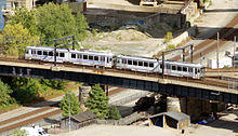 The Pittsburgh Light Rail (commonly known as The T) is a 26.2-mile (42.2 km)[1][4] light rail system in Pittsburgh, Pennsylvania and surrounding suburbs. It operates as a deep-level subway in Downtown Pittsburgh, but runs mostly at-grade in the suburbs south of the city. The system is largely linear in a north-south direction, with one terminus just north of Pittsburgh's central business district and two termini in the South Hills. The system is owned and operated by the Port Authority of Allegheny County. It is the successor system to the streetcar network formerly operated by Pittsburgh Railways, the oldest portions of which date to 1903.[5] The Pittsburgh light rail lines are vestigial from the city's streetcar days, and is one of only three light rail systems in the United States that continues to use the Pennsylvania Trolley (broad) gauge rail on its lines instead of 4 ft 8 1&fras1;2 in (1,435 mm) standard gauge. Pittsburgh is one of the few North American cities that have continued to operate light rail systems in an uninterrupted evolution from the first-generation streetcar era, along with Boston, Cleveland, New Orleans, Newark, Philadelphia, San Francisco and Toronto.
