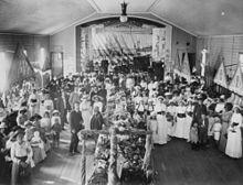 The Pittsworth Branch of the Queensland Country Women's Association opened in 1924.[27] At the meeting held in the Masonic Hall to consider opening a branch in Pittsworth, the Darling Downs organiser, Mrs. Fairfax, explained that "the main object of members was to work for their sisters that were less fortunate than themselves, and spoke of the benefits of the reduced railway fares, the education of children out back, the homes at the seaside, and the bush nurses, and various other branches of work that is handled by the Association."[28] The first President was Mrs. H.C. Hodgson.[28] The Beuaraba Branch still meets in Pittsworth at the Uniting Church Hall, Briggs Street.[29]