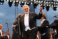 José Plácido Domingo Embil [a] (born 21 January 1941)[1] is a Spanish opera singer, conductor and arts administrator. He has recorded over a hundred complete operas and is well known for his versatility, regularly performing in Italian, French, German, Spanish, English and Russian in the most prestigious opera houses in the world. Although primarily a lirico-spinto tenor for most of his career, especially popular for his Cavaradossi, Hoffmann, Don José and Canio, he quickly moved into more dramatic roles, becoming the most acclaimed Otello of his generation.[2][3][4] In the early 2010s, he transitioned from the tenor repertory into almost exclusively baritone parts, most notably Simon Boccanegra. As of 2020, Domingo has performed 151 different roles.[5][6]
