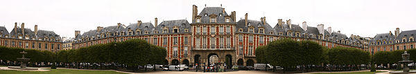 The Place des Vosges (French pronunciation: [plas de voʒ]), originally Place Royale, is the oldest planned square in Paris, France. It is located in the Marais district, and it straddles the dividing-line between the 3rd and 4th arrondissements of Paris. It was a fashionable and expensive square to live in during the 17th and 18th centuries, and one of the central reasons for the fashionable nature of Le Marais among the Parisian nobility.
