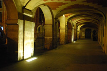 Place des Vosges, inaugurated in 1612 with a grand carrousel to celebrate the engagement of Louis XIII and Anne of Austria, is a prototype of the residential squares of European cities that were to come. What was new about the Place Royale in 1612 was that the housefronts were all built to the same design, probably by Jean Baptiste Androuet du Cerceau,[1] of red brick with strips of stone quoins over vaulted arcades that stand on square pillars. The steeply-pitched blue slate roofs are pierced with discreet small-paned dormers above the pedimented dormers that stand upon the cornices. Only the north range was built with the vaulted ceilings that the “galleries” were meant to have. Two pavilions that rise higher than the unified roofline of the square center the north and south faces and offer access to the square through triple arches. Though they are designated the Pavilion of the King and of the Queen, no royal has ever lived in the aristocratic square, except for Anne of Austria in the Pavilion de la Reine, for a short while. Place des Vosges initiated subsequent developments of Paris that created a suitable urban background for the French aristocracy and nobility.