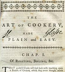 Hannah Glasse's signature at the top of the first chapter of her book, The Art of Cookery Made Plain and Easy, 6th Edition, 1758, an attempted defence against rampant plagiarism