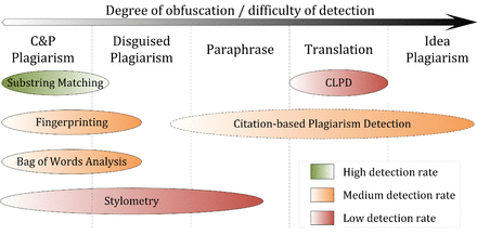 Computer-assisted plagiarism detection (CaPD) is an Information retrieval (IR) task supported by specialized IR systems, which is referred to as a plagiarism detection system (PDS) or document similarity detection system. A 2019 systematic literature review[4] presents an overview of state-of-the-art plagiarism detection methods.