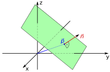 where is a unit normal vector to the plane, a position vector of a point of the plane and D0 the distance of the plane from the origin.
