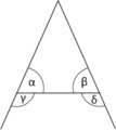 The pons asinorum or bridge of asses theorem' states that in an isosceles triangle, α = β and γ = δ.